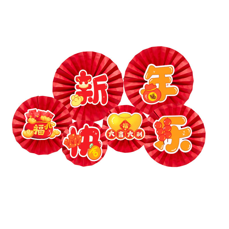 📚 新年装饰纸扇花挂饰2026新款马年过年福字场景装饰春节背景墙布置