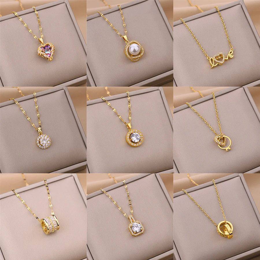 📚 New In Light Zircon Crystal Stainless Steel Necklaces For Wo
