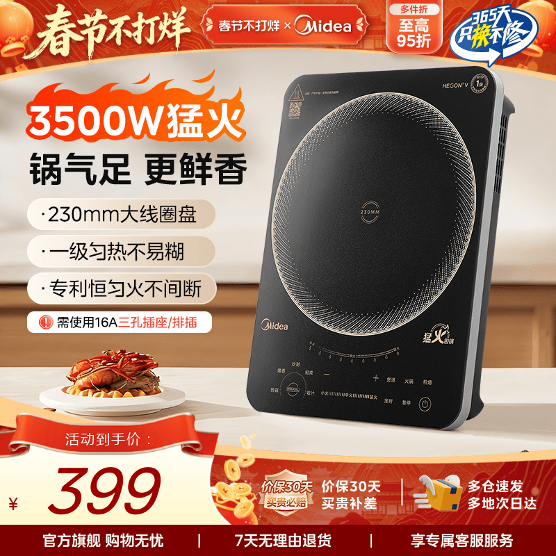 99¥ CA381 BVbRUNpTuWV¥ https://m.tb.cn/h.7DbWKq7 美的电磁炉家用大功率3500w炒菜火锅多功能电磁灶官方旗舰店正品 --------------------- 【原售价】599元 【现售价】599元。