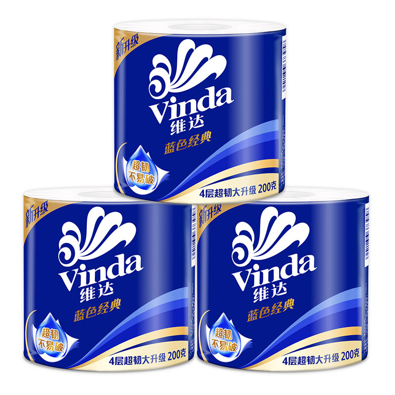 📚 维达卷纸3卷有芯卷筒纸200克家用大卷卫生纸巾4层超韧厕纸擦手纸