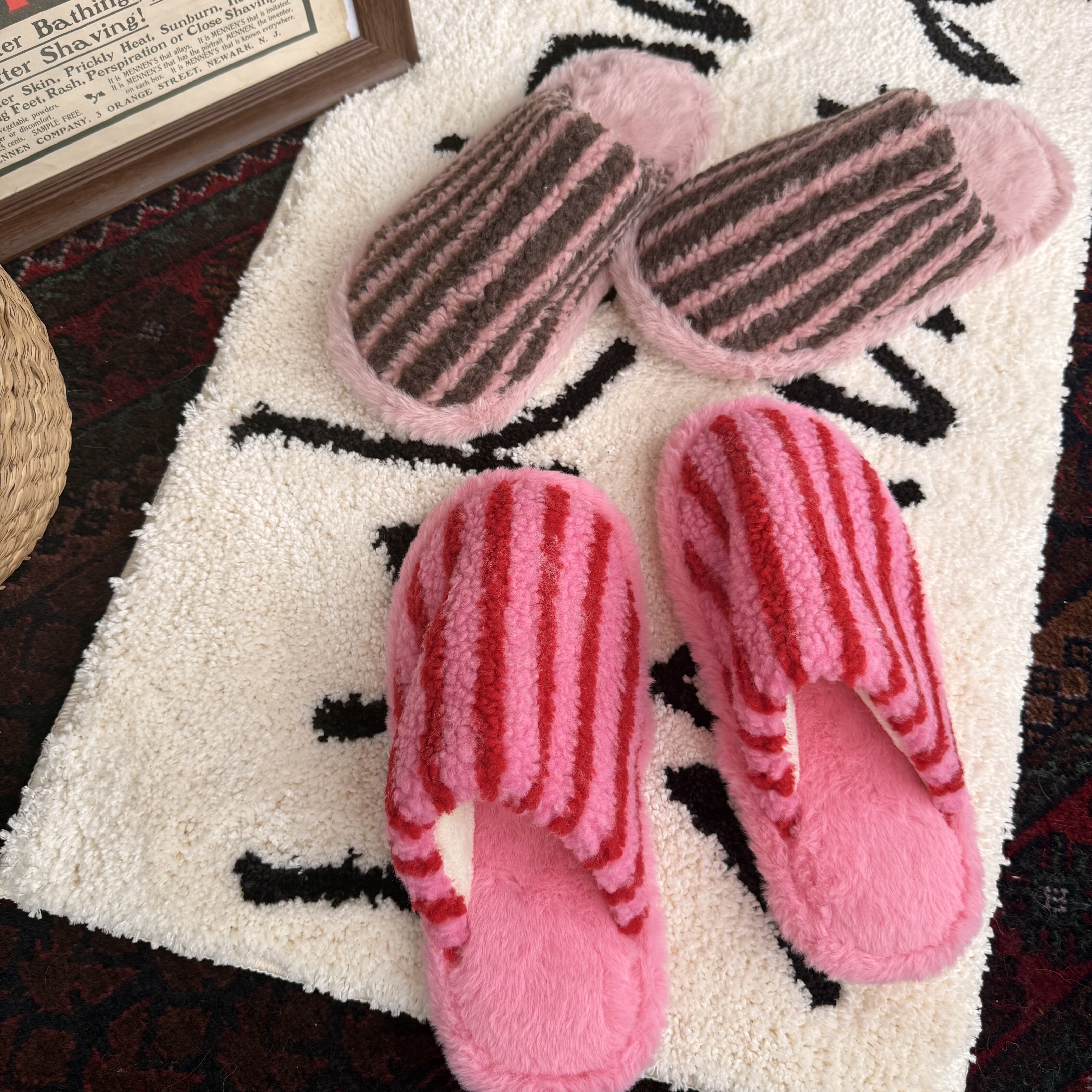 🔥「Livingbank小韩ins毛毛拖鞋,复古撞色软绵绵,券后价68.6!」种草记笔记