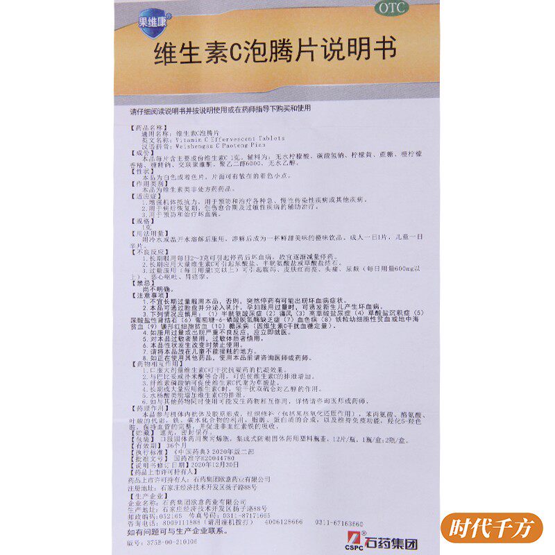 📚 石药果维康维生素C泡腾片24片增加机体抵抗力治疗坏血病