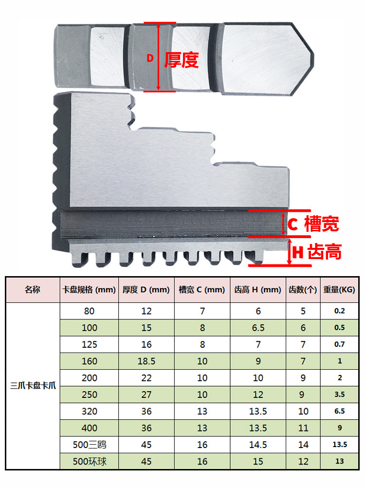 📚 三爪卡爪三爪卡盘配件卡爪抓卡脚250卡盘软爪分离卡爪200正爪反爪