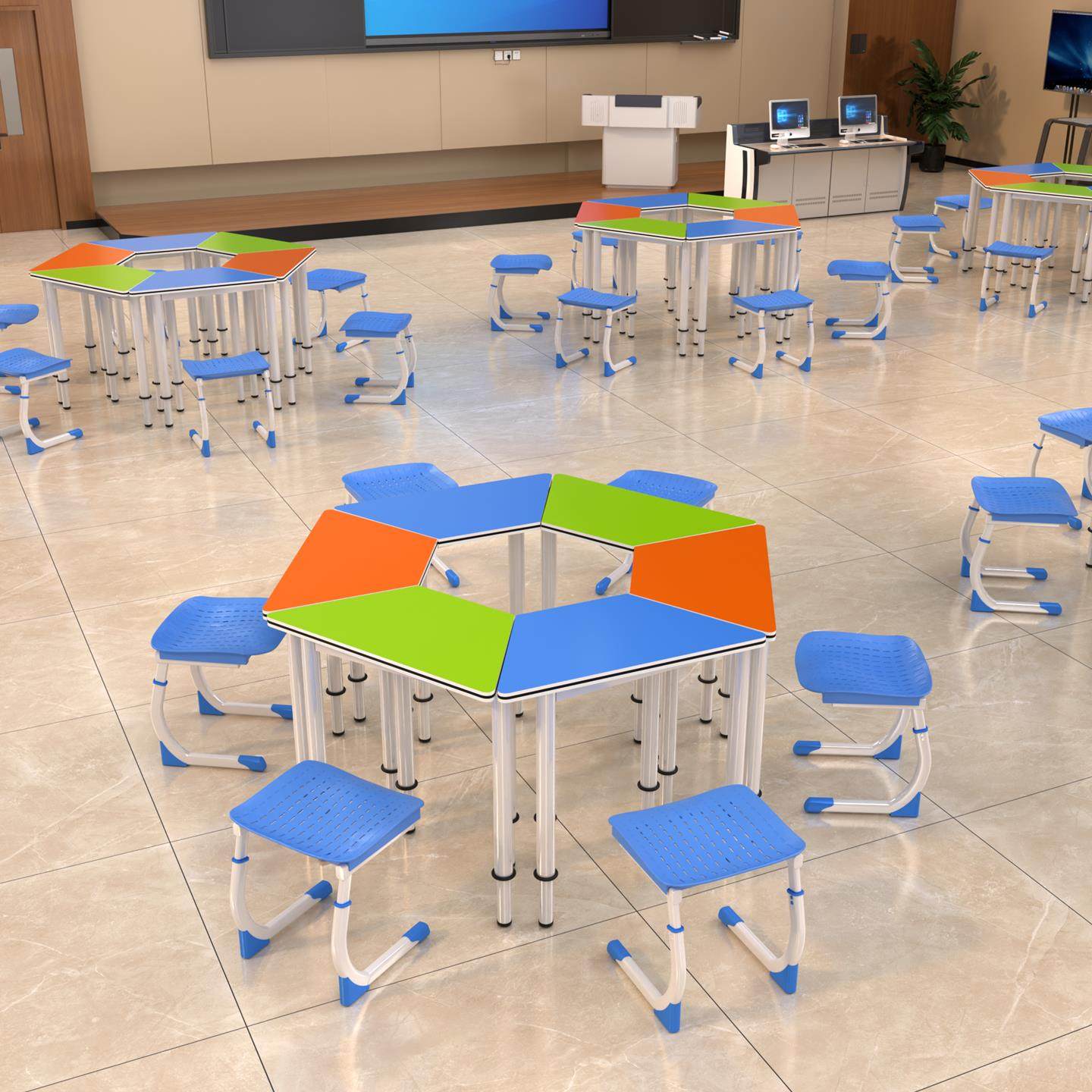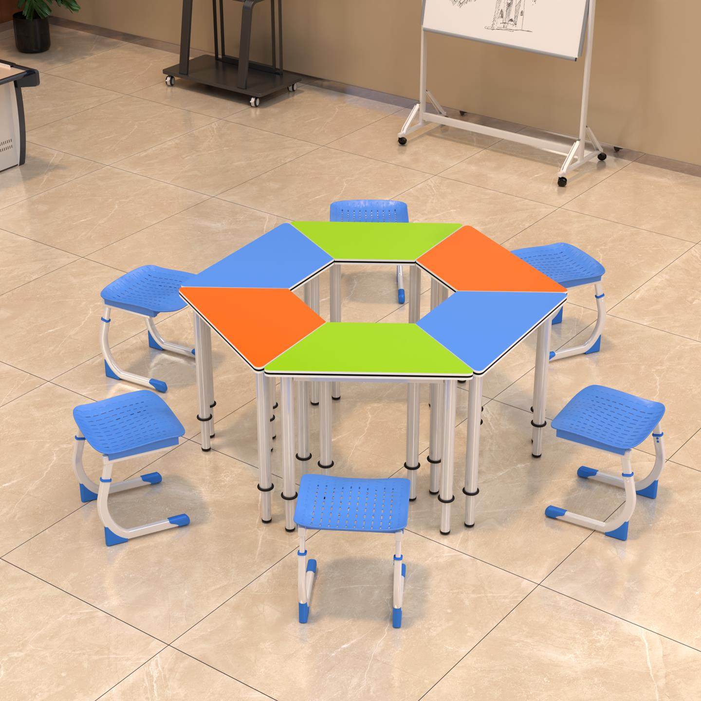 📚 学校心理辅导室团体活动组合圆管升降桌椅中小学生培训移动六边桌