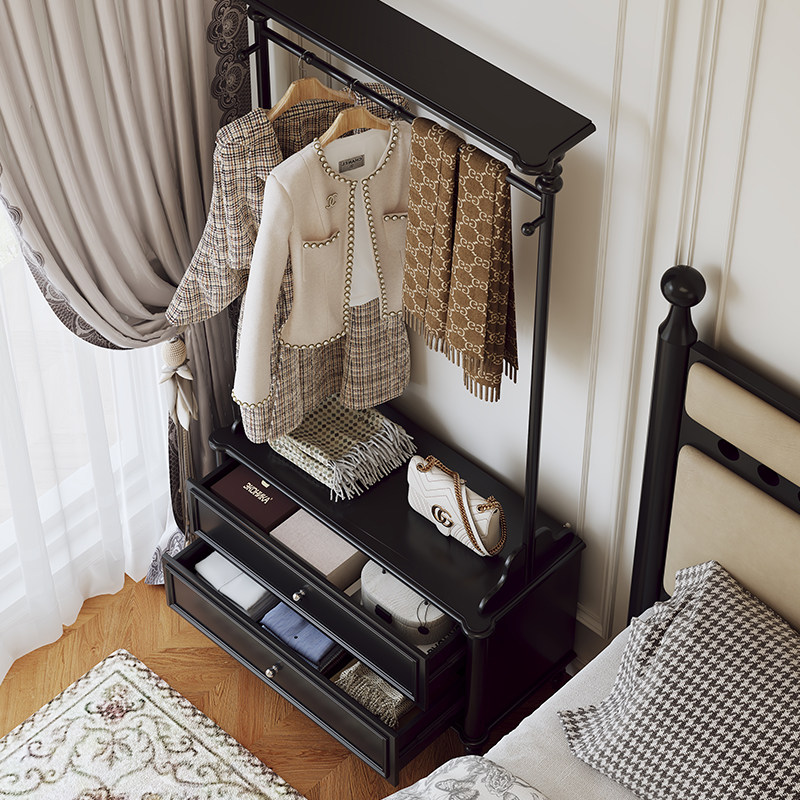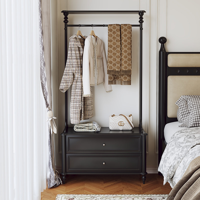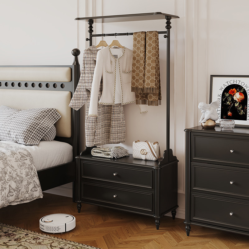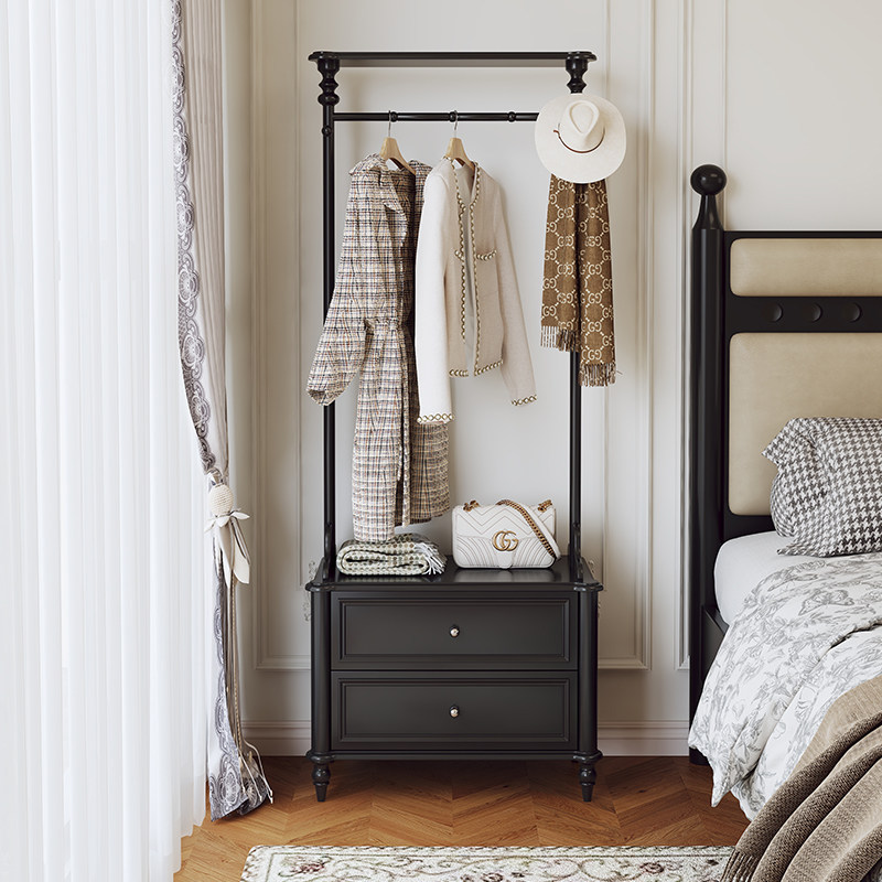 📚 法式复古衣帽架床头柜一体实木黑色美式卧室床边柜挂衣架2025新款