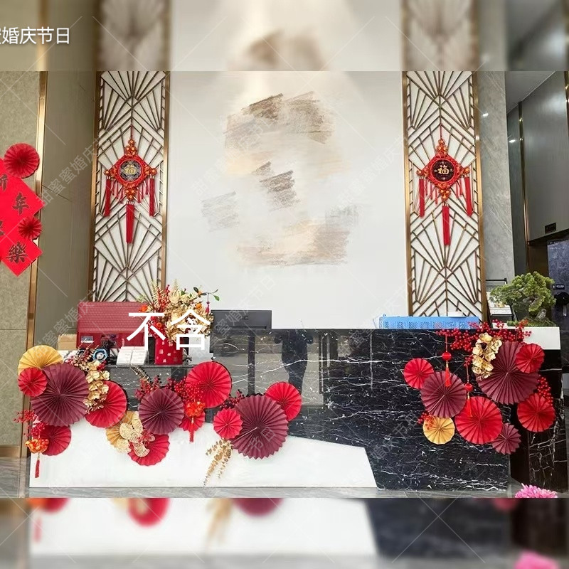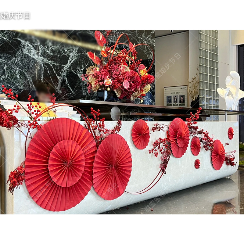 花艺布置马年纸扇大堂
