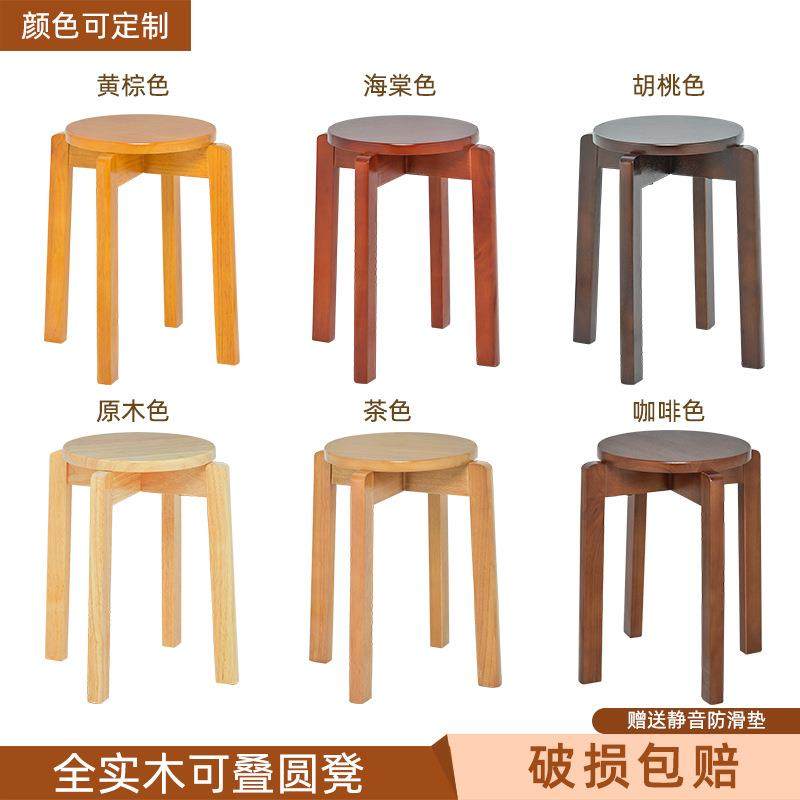 📚 实木餐凳家用板凳可重叠凳子榫卯加厚居家简约凳子餐厅凳子胡桃色