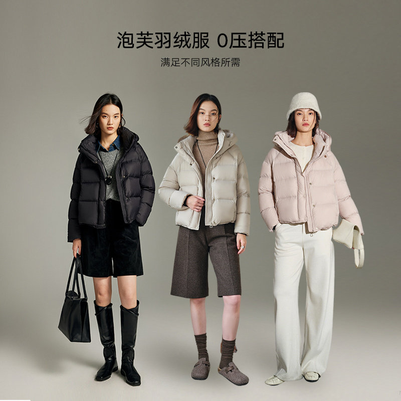 📚 优雅米白90白鸭绒羽绒服女MOFAN摩凡2025冬新款连帽设计保暖外套