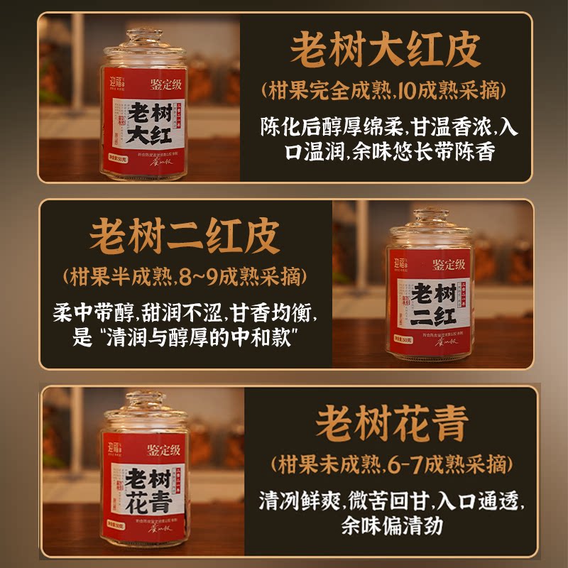 📚 迎福正宗新会陈皮2021年老陈皮5年大红皮二红皮花青组合装50gx3罐