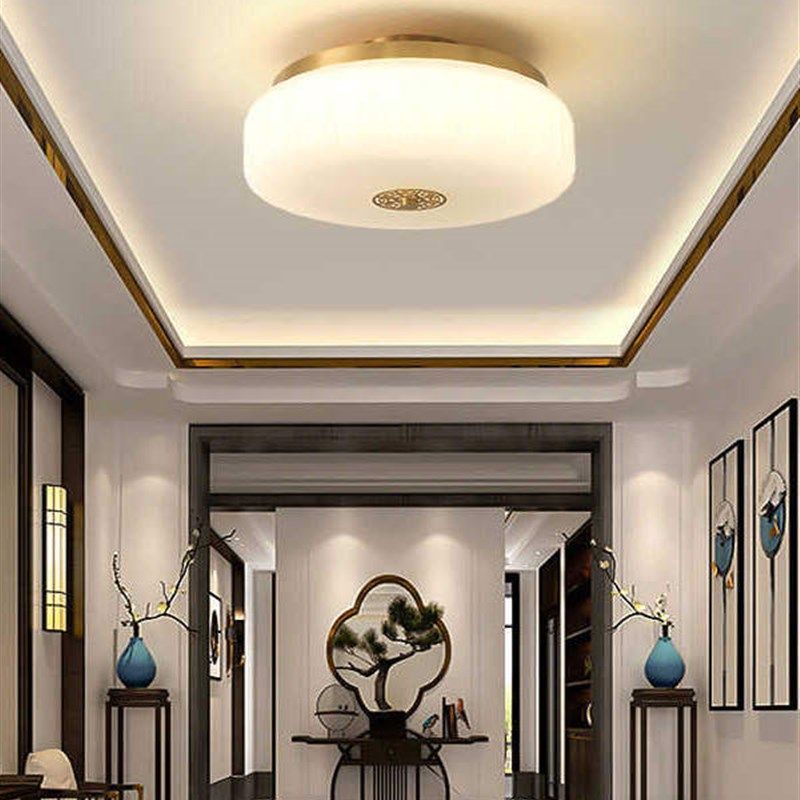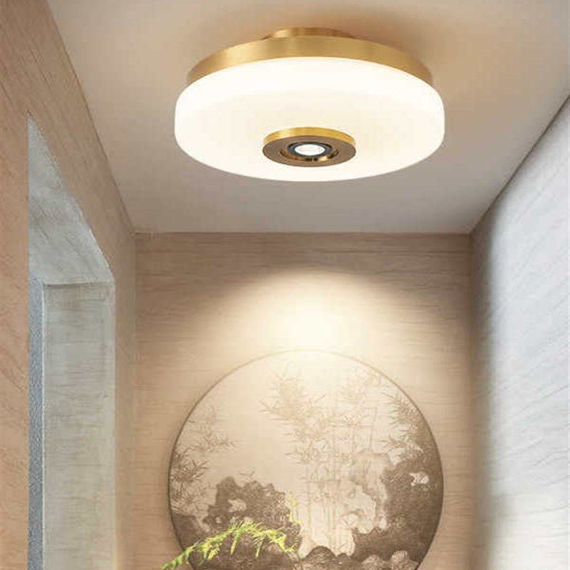 📚 新中式全铜过道走廊衣帽间玄关阳台楼梯吸顶灯带射灯玻璃吊顶灯具