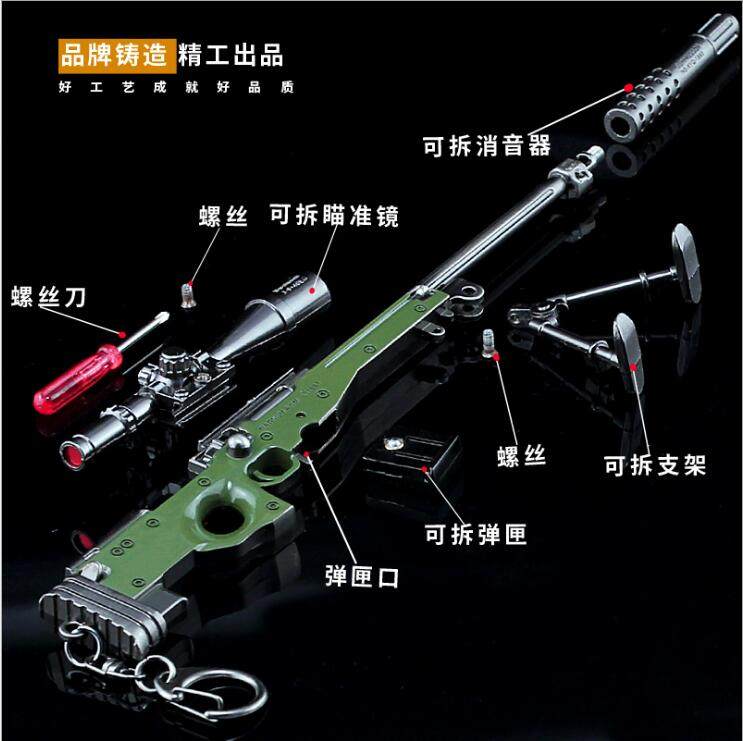 📚 绝地吃鸡周边大逃杀AWM狙击枪合金模型 可拆卸弹夹消音器玩具摆件