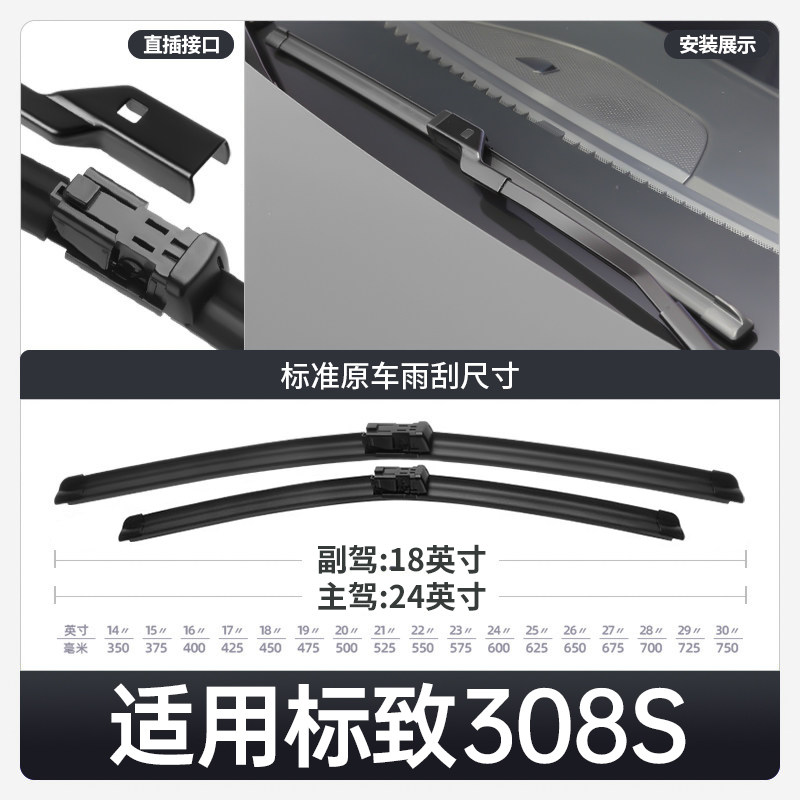 📚 适用东风标致308S雨刮器原装原厂15款汽车专用胶条标志配件雨刷条