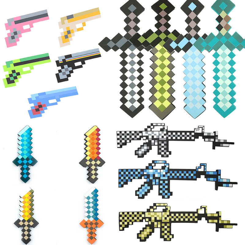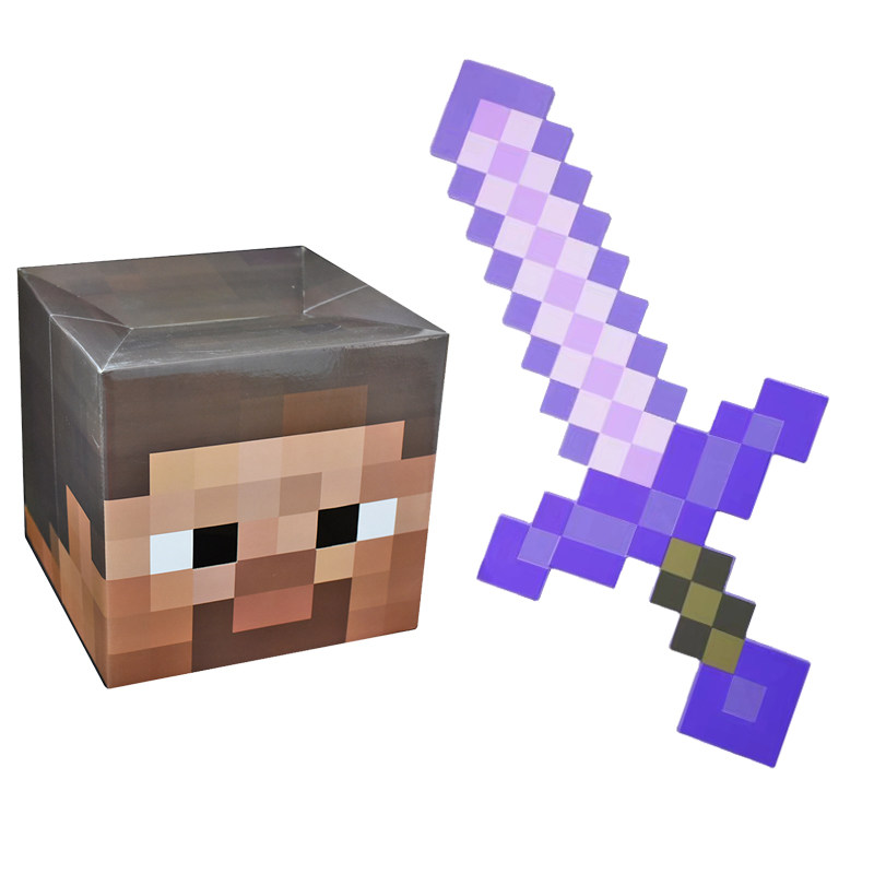 📚 我的世界玩具游戏周边泡沫剑钻石剑镐头冲锋枪斧头史蒂夫纸箱头套