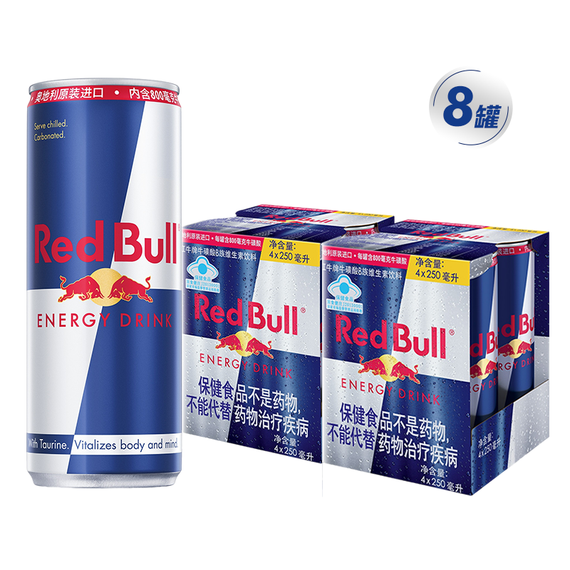 📚 奥地利红牛Red Bull原装进口饮料800毫克牛磺酸B族250ml*8罐装