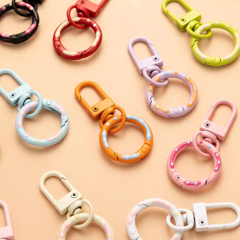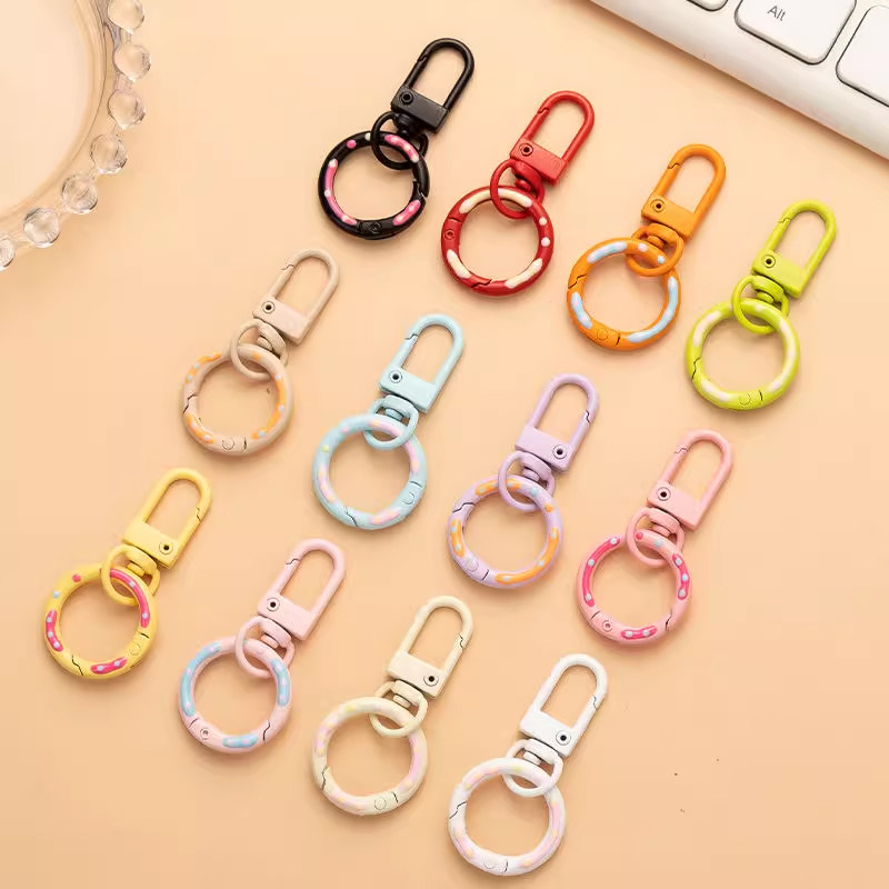 📚 马卡龙色弹簧烤漆钥匙扣彩色喷漆发财扣创意包包挂件饰品配件