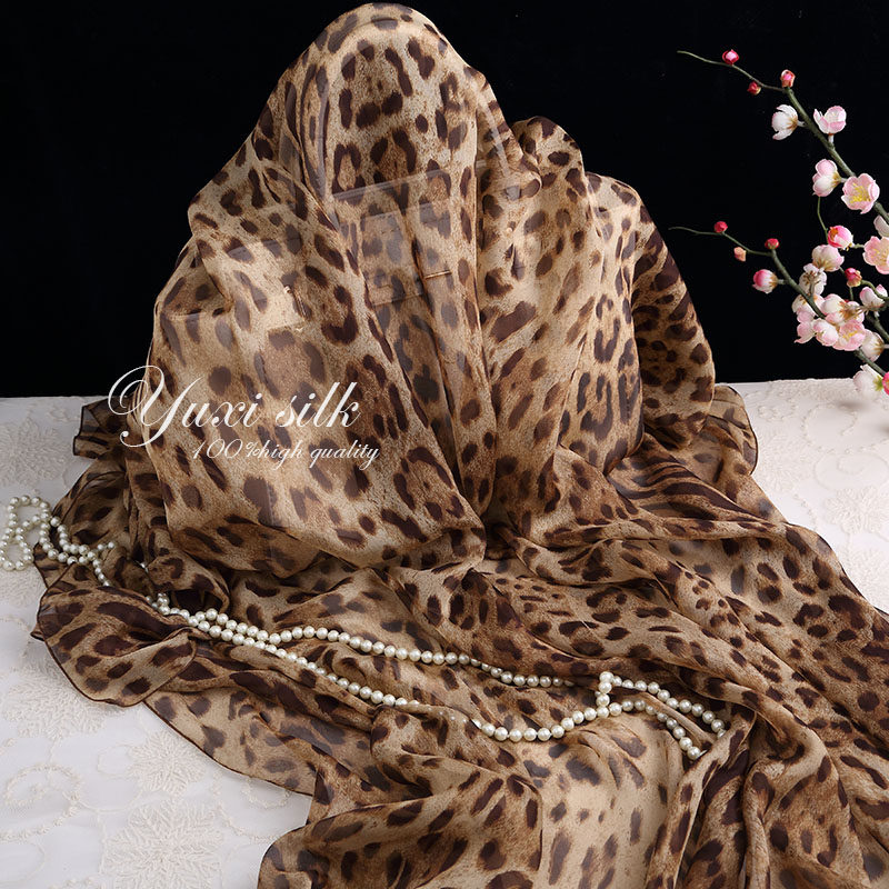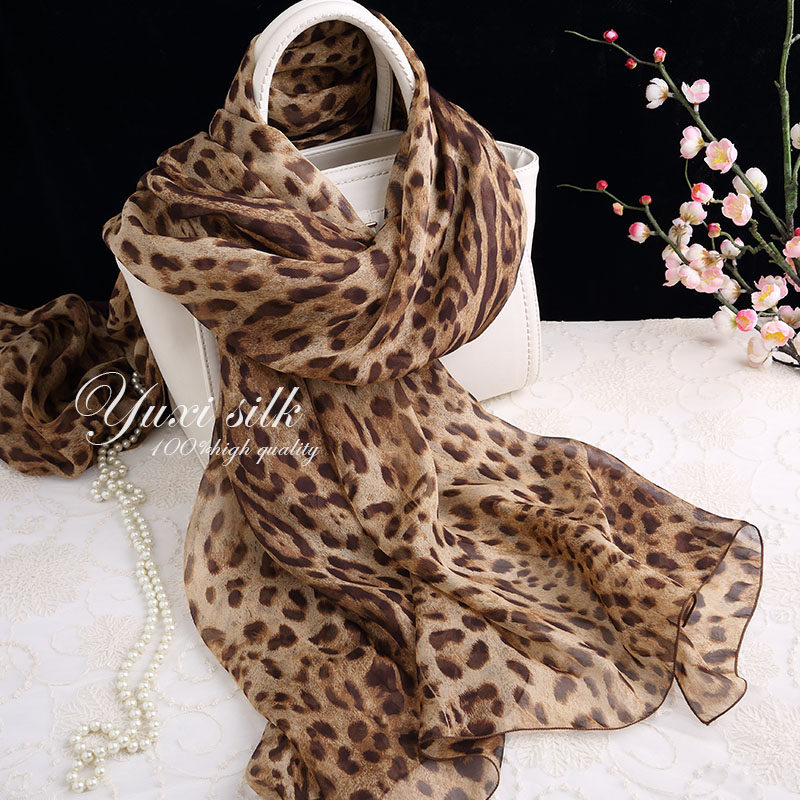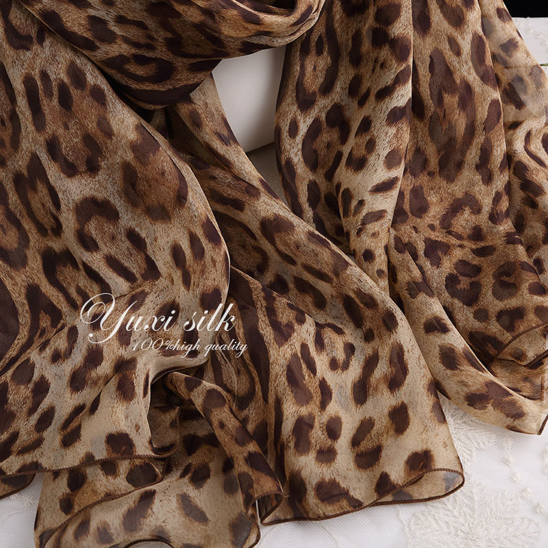 📚 经典豹纹100%桑蚕丝长款真丝丝巾披肩女士纱巾春秋冬夏季丝绸围巾