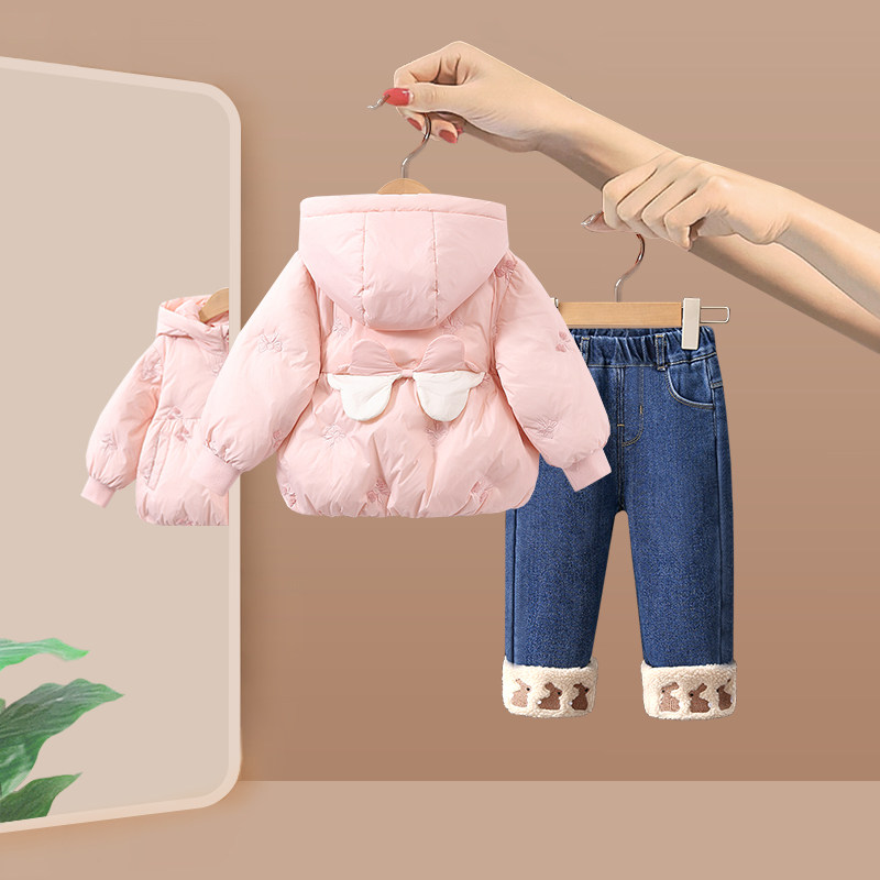 📚 女童羽绒服套装秋冬季2025新款洋气宝宝冬装牛仔裤儿童外套两件套