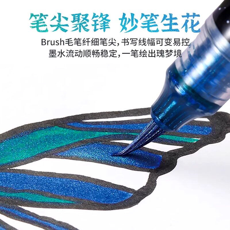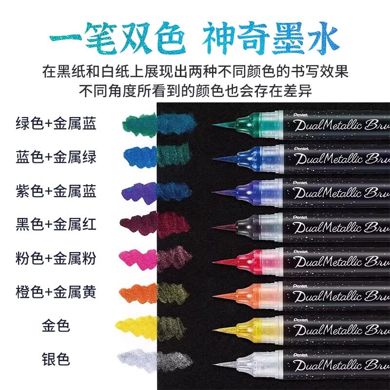 📚 派通闪光毛笔蝴蝶科学毛笔金色笔钢笔式毛笔金色秀丽笔小楷书法软笔描金笔金墨笔软头笔抄经描佛像金笔金粉笔