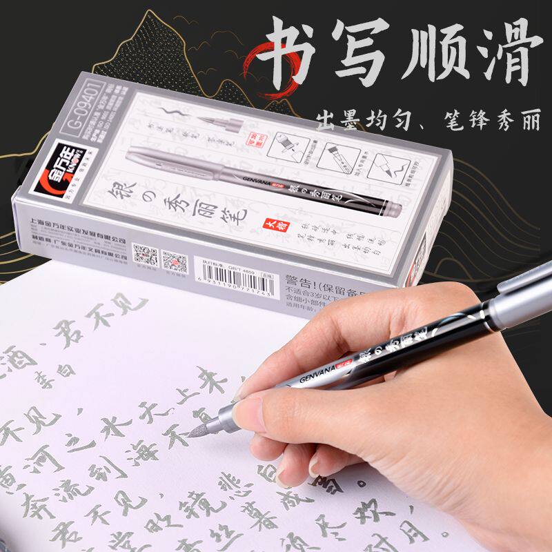 📚 金万年银金色秀丽笔金字金墨笔请柬烫金鎏金笔书法专用红色朱砂笔