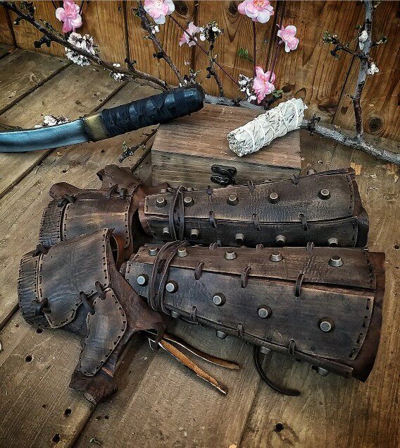 📚 中世纪蒸汽朋克复古护臂拳击手套护手铆钉系带Medieval Armguards