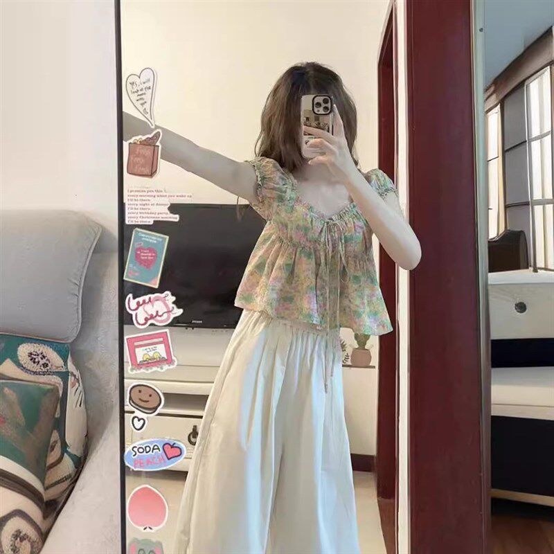 📚 夏季2023盐系轻熟穿搭小个子短袖衬衫+休闲裤俏皮W活泼减龄套装女