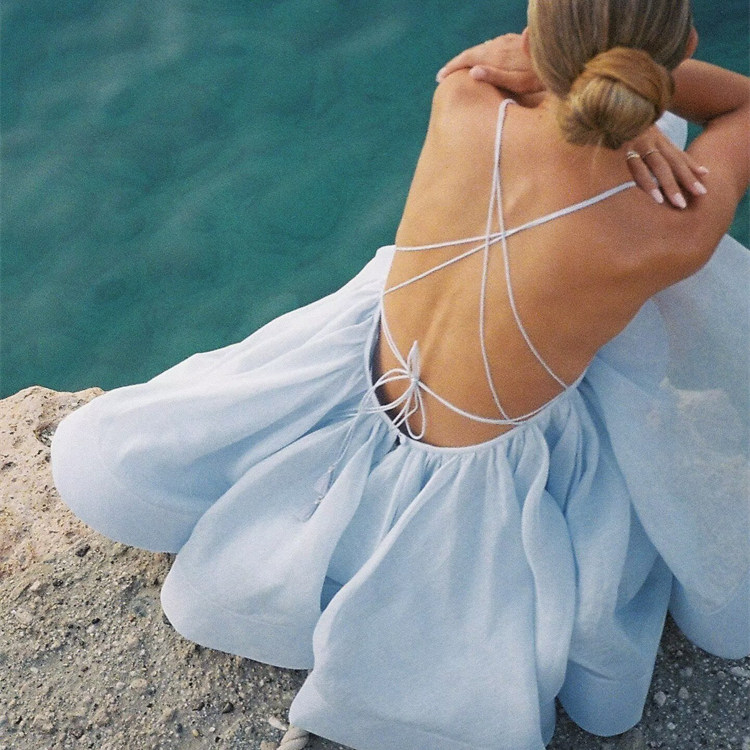 📚 露背绑带吊带连衣裙A字蓬蓬裙夏旅游度假风海边沙滩辣妹性感短裙
