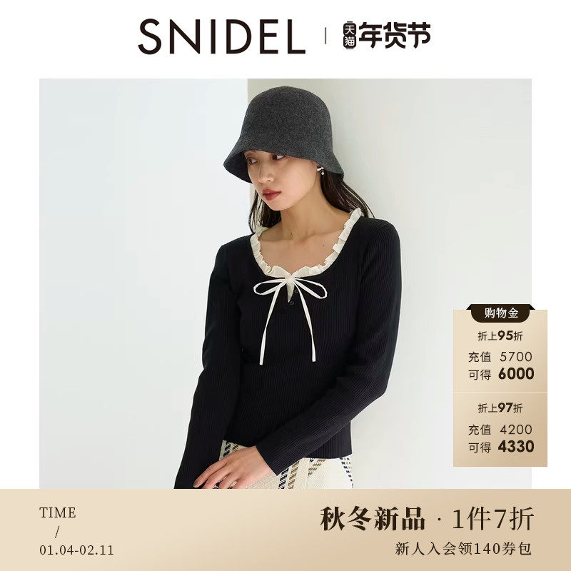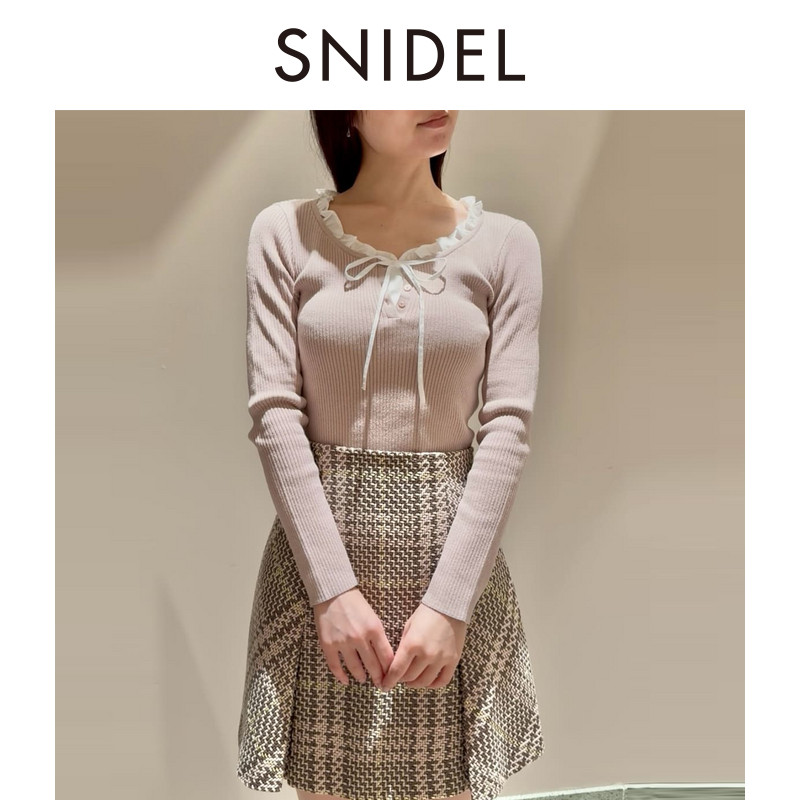 📚 SNIDEL2025秋冬新品甜美荷叶领蝴蝶结系带长袖针织衫SWNT254219