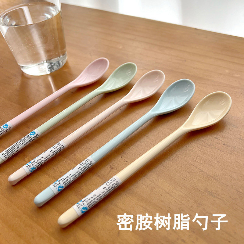 📚 奶茶搅拌勺可爱创意纯彩色咖啡勺子加长柄蜂蜜甜品调酒匙密胺树脂