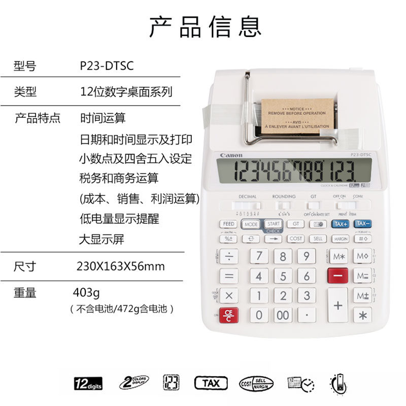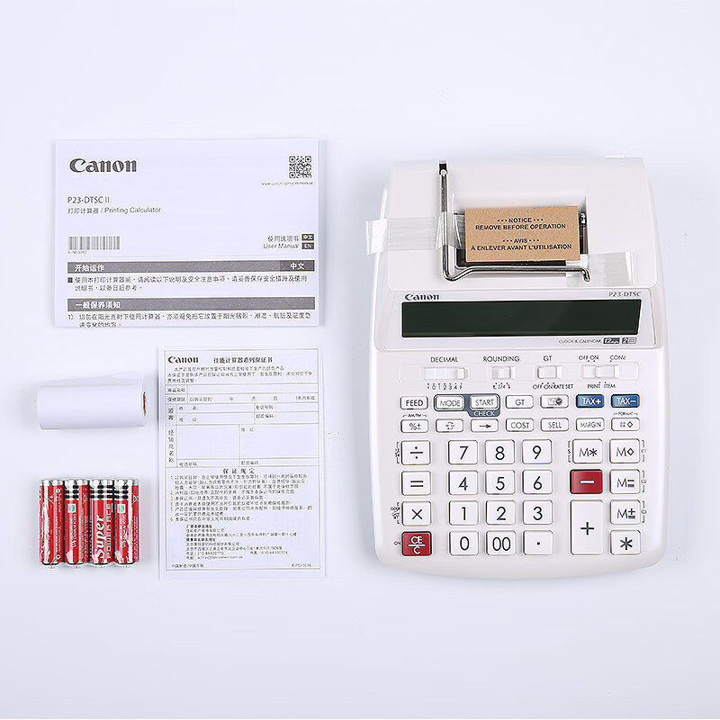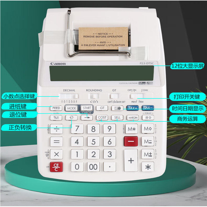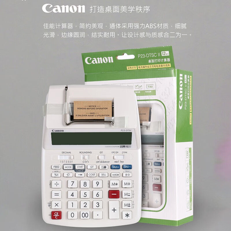📚 佳能(Canon) 出纸计算器银行会计财务打印式计算机皮行打码机酒店收银电池插电双用墨轮P23-DTSC打印计算器