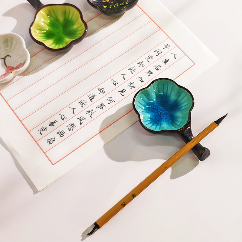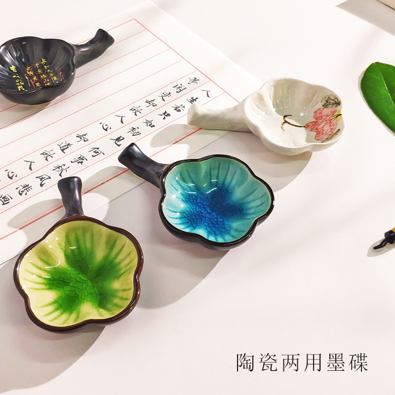 📚 陶瓷墨碟多功能创意墨盒墨蝶两用盛墨汁笔架墨池初学者书法器具古风墨盘彩色笔搁文房案头学生书法练字用具