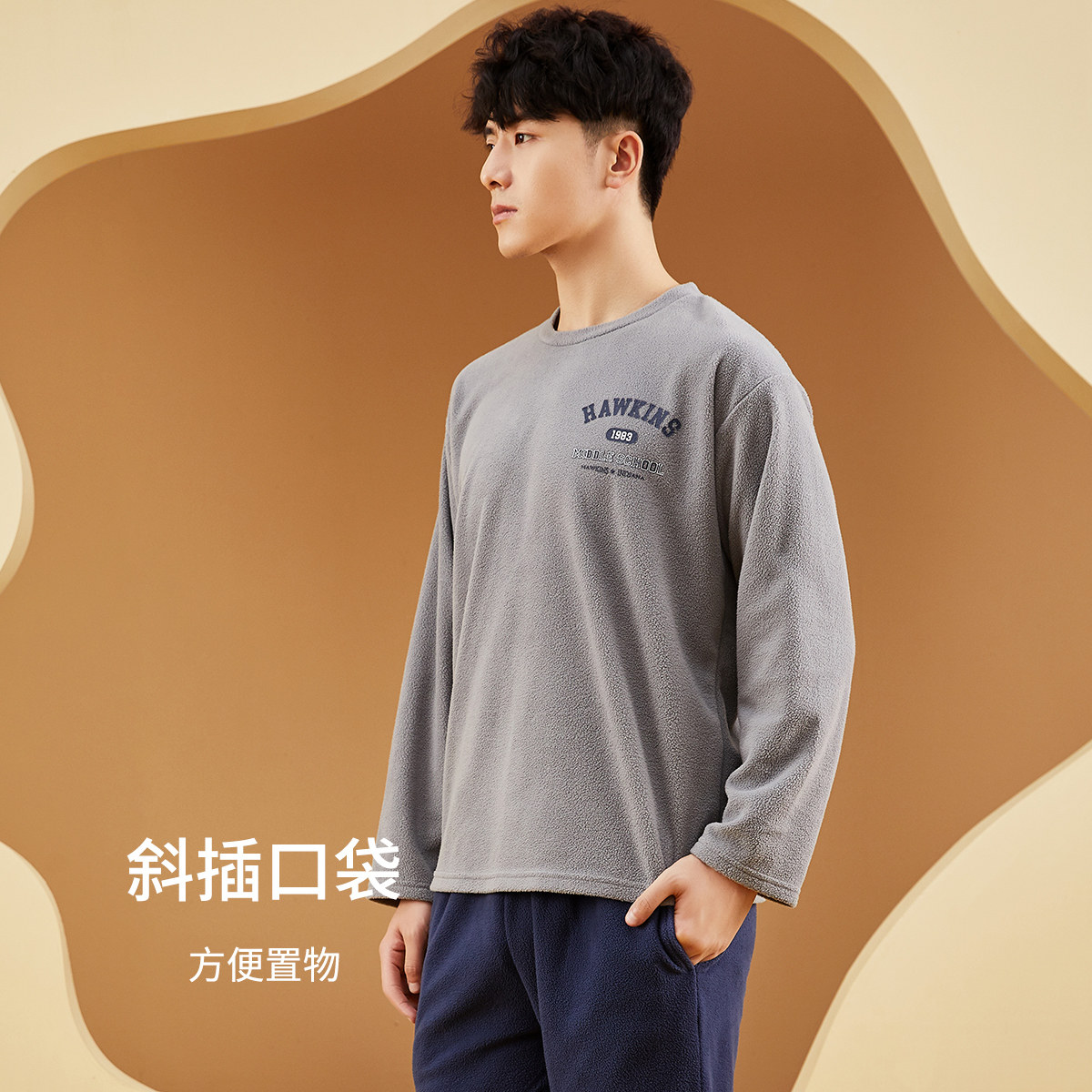 📚 顶呱呱男家居服套头卫衣式长袖长裤休闲情侣摇粒绒睡衣秋冬可外穿