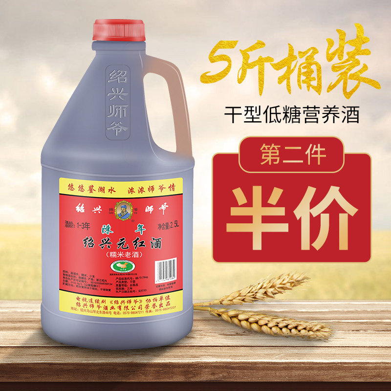 📚 绍兴师爷 黄酒桶装5斤冬酿干型绍兴元红酒自饮做菜泡阿胶料酒特产