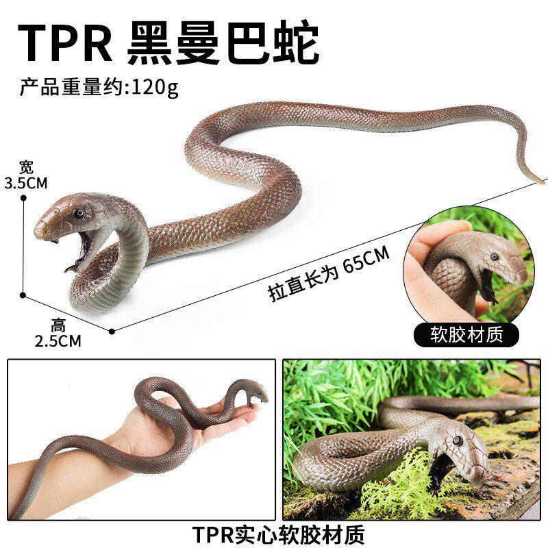 📚 儿童认知玩具仿真动物模型TPR实心软胶蛇黑曼巴蛇蟒蛇眼镜蛇青蛇