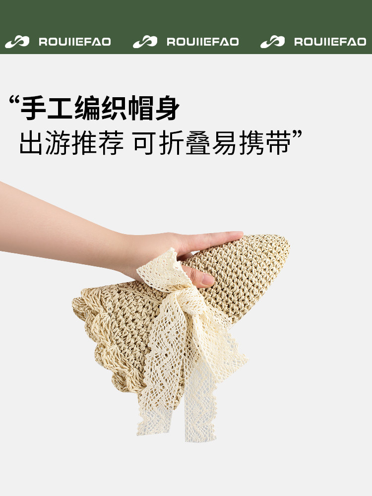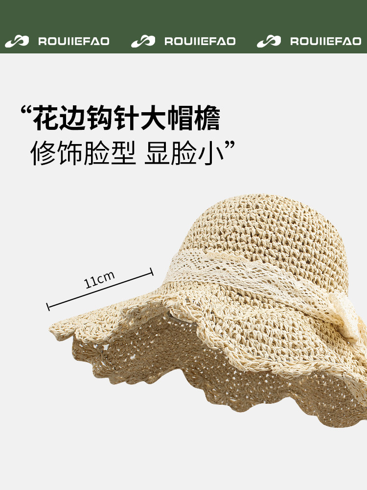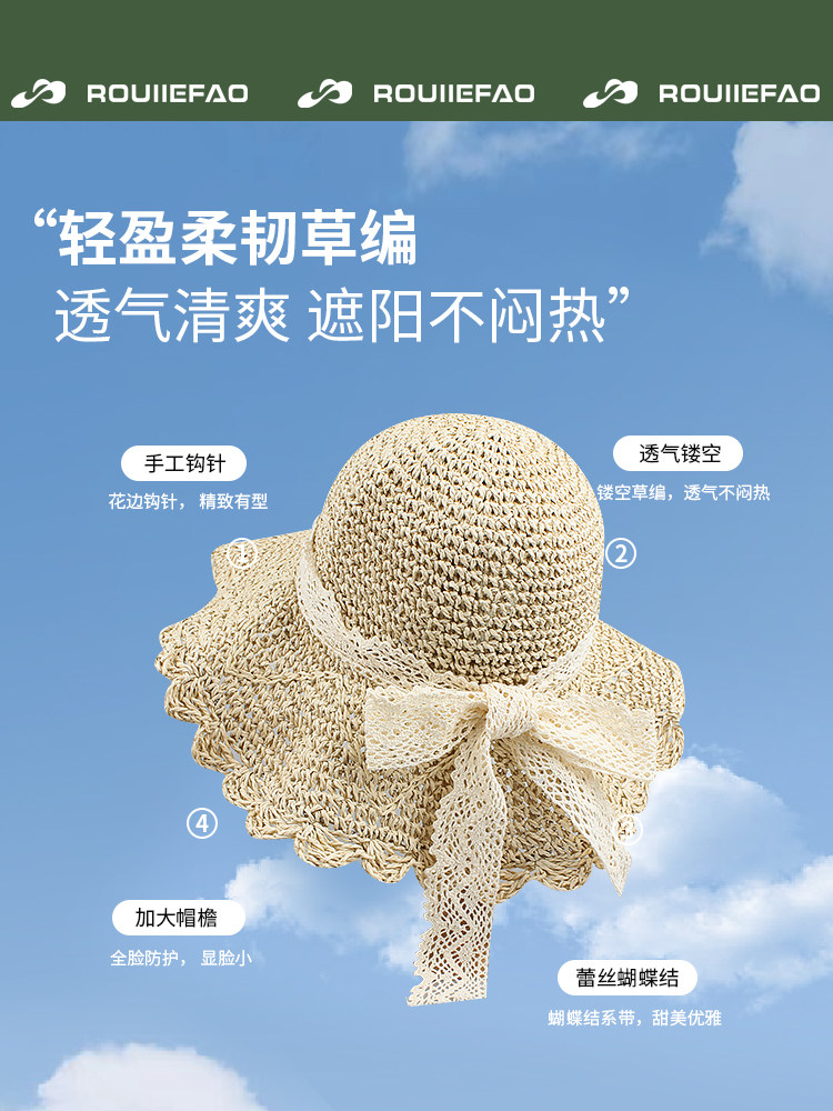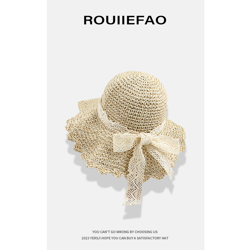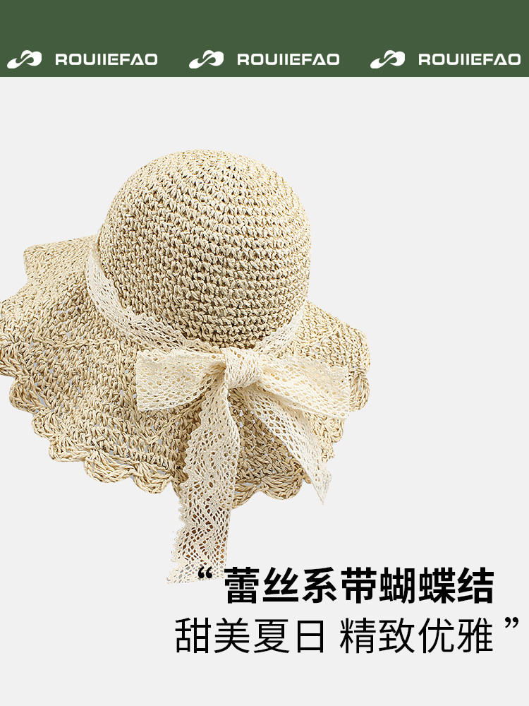 📚 法式蕾丝蝴蝶结草编渔夫帽女2025新款海边沙滩大檐防晒草帽遮阳帽