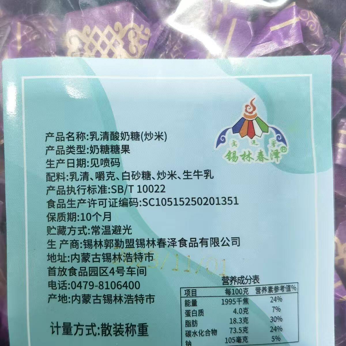 📚 锡林春泽乳清酸奶糖炒米糖芝麻味内蒙古特产糖果独立包装开袋即食
