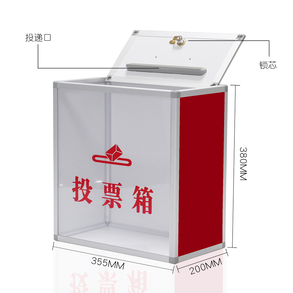 📚 【大号投票箱】会议选举箱红色公投箱手提式铝合金募捐箱中号落地式可投A4纸透明立式上投选票箱带锁组装式
