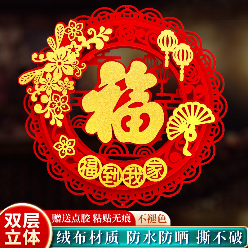 🎉惊艳!福字门贴乔迁之喜新年装饰,绒布窗花剪纸一贴即成,券后价仅需10.9💰