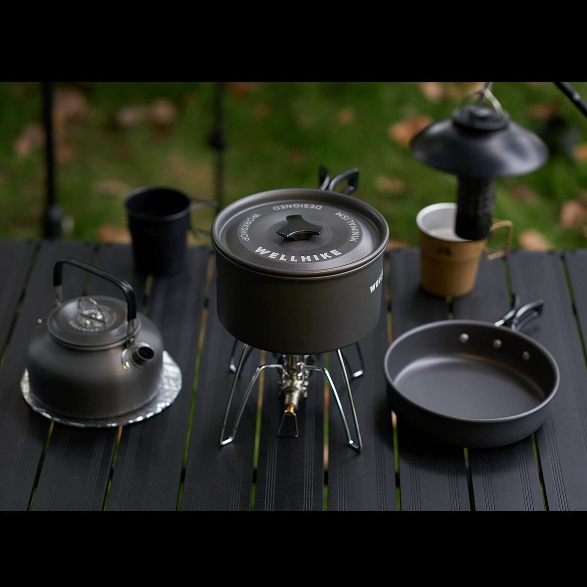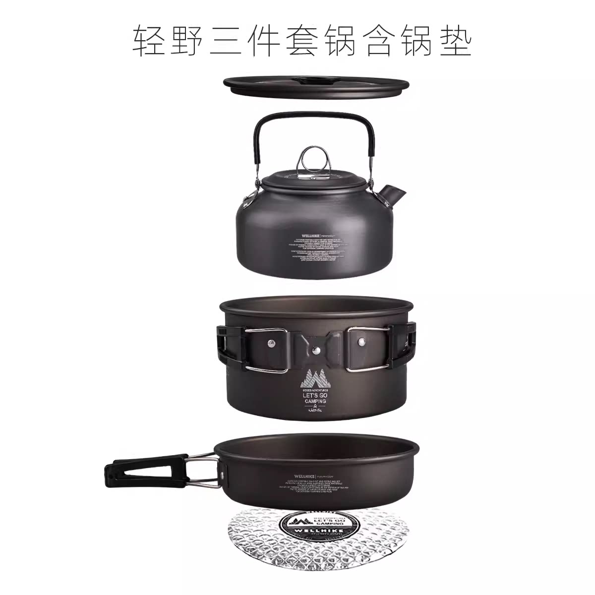 📚 WELLHIKE日本户外露营3轻量化水壶煎锅炖锅套装锅具三件套