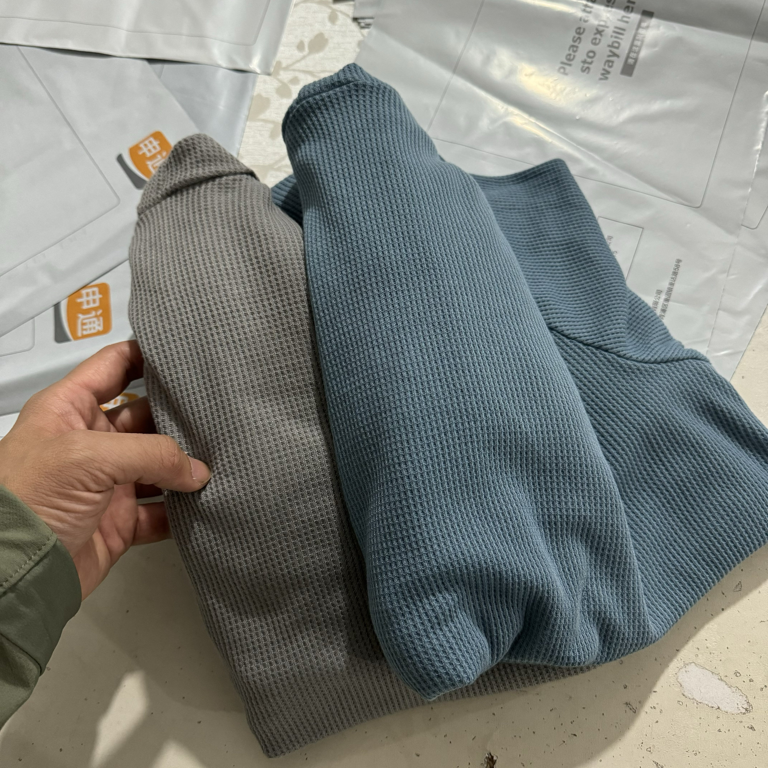 19¥ HU926 JW1SUnWek38¥ https://m.tb.cn/h.7xc6LrI 出口单 大码针织运动连帽华夫格薄款长袖纯色男女春秋上衣徒步976 --------------------- 【原售价】24元 【现售价】24元。