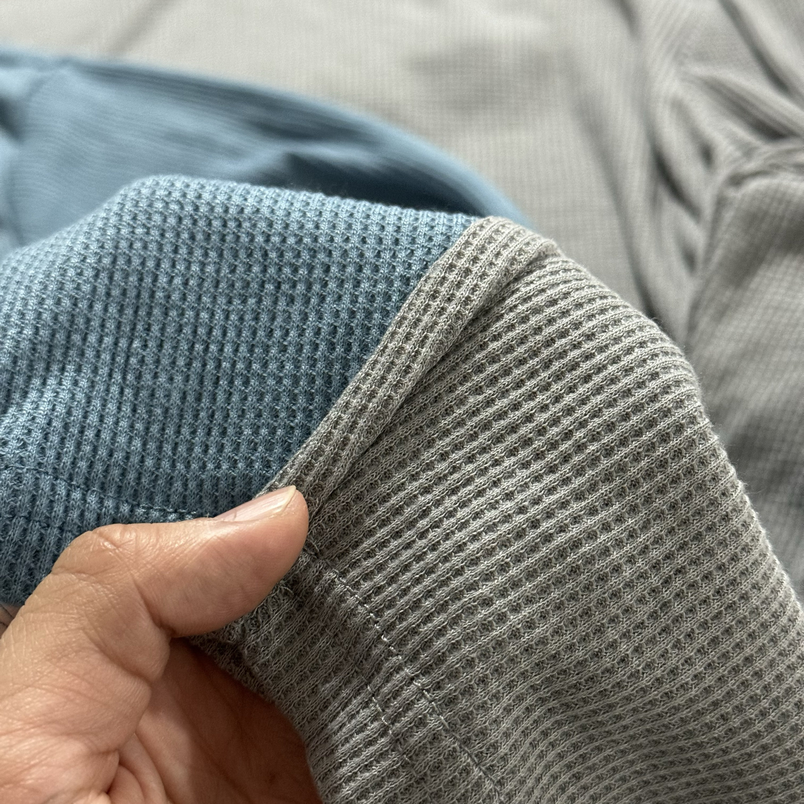 📚 出口单 大码针织运动连帽华夫格薄款长袖纯色男女春秋上衣徒步976