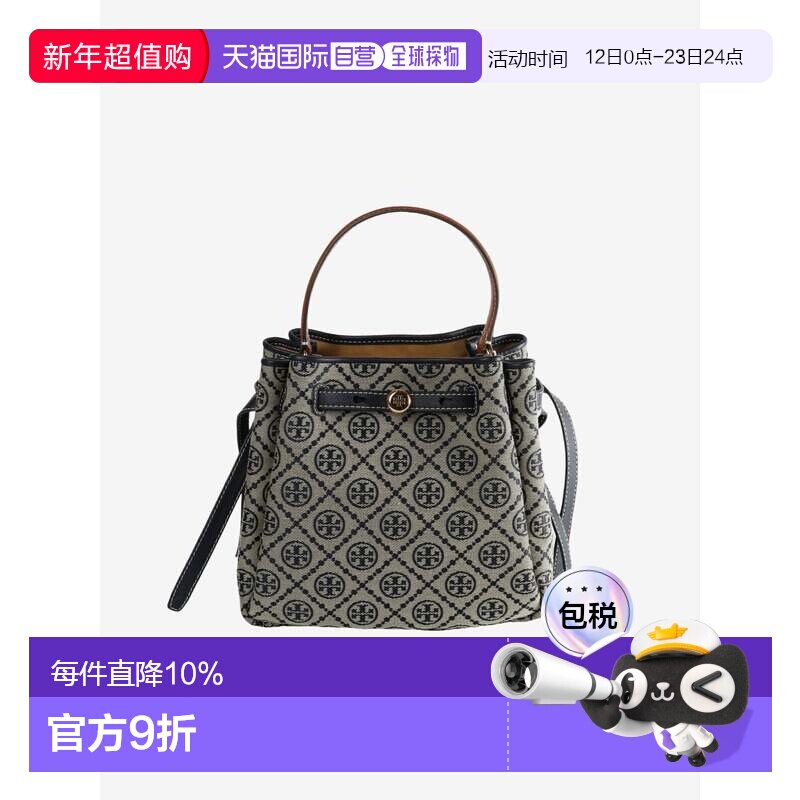 📚 TORY BURCH/汤丽柏琦 女士Romy T字母印花斜挎包经典老花水桶包