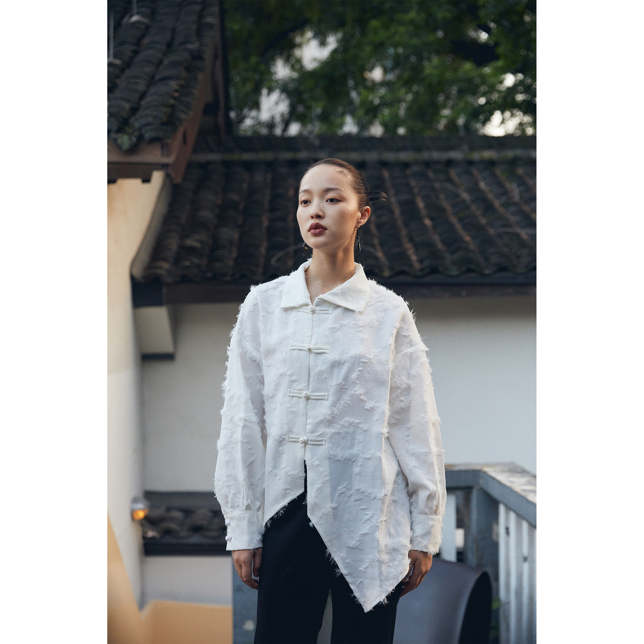 💥【SALE7折】惊艳全场!蓝点原创设计中式衬衣,白流苏盘扣改良,券后仅318.5💖