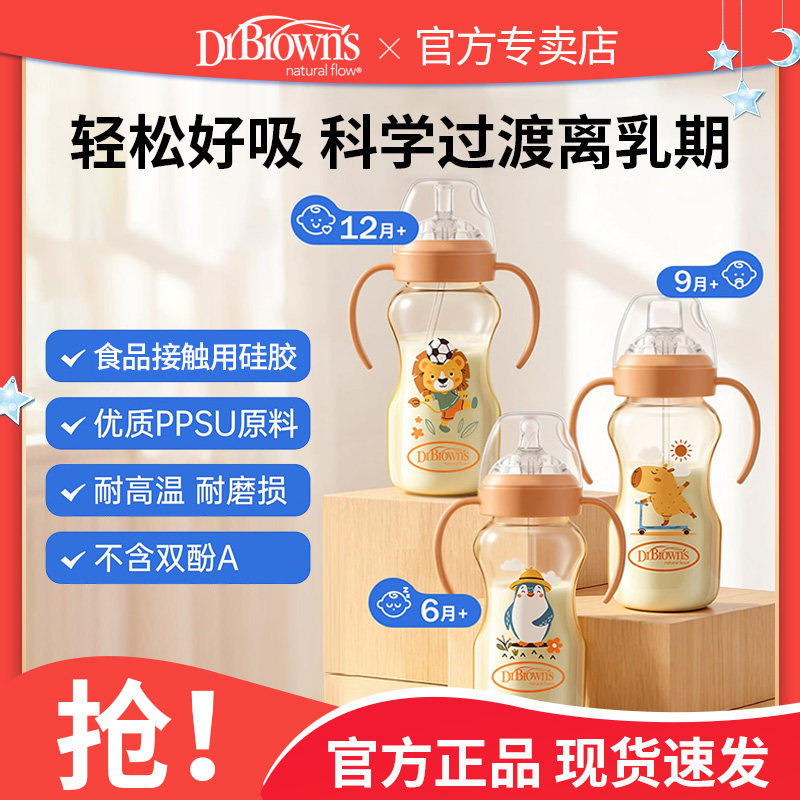 📚 布朗博士PPSU奶瓶9个月以上重力球吸管学饮杯喝水成长型吸管奶瓶