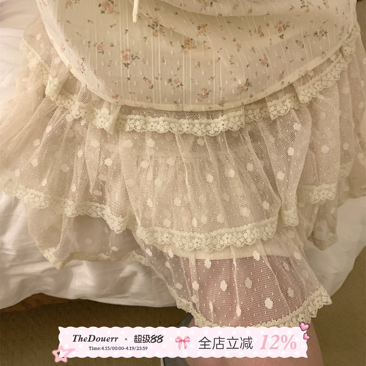 📚 TheDouerr 夏日暮野米色波点网纱蛋糕蓬蓬裙蕾风半身裙小个子