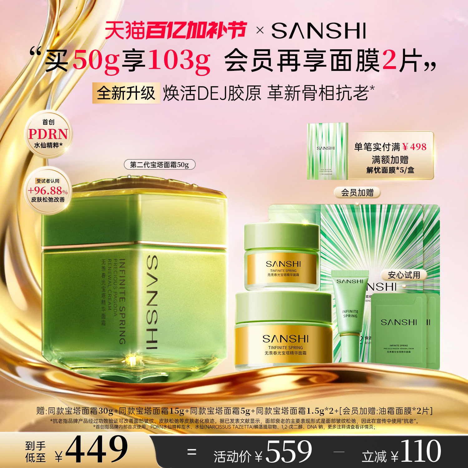 📚 三式春光宝塔精华面霜DEJ胶原紧致滋润抗皱精华霜干皮秋冬护肤品
