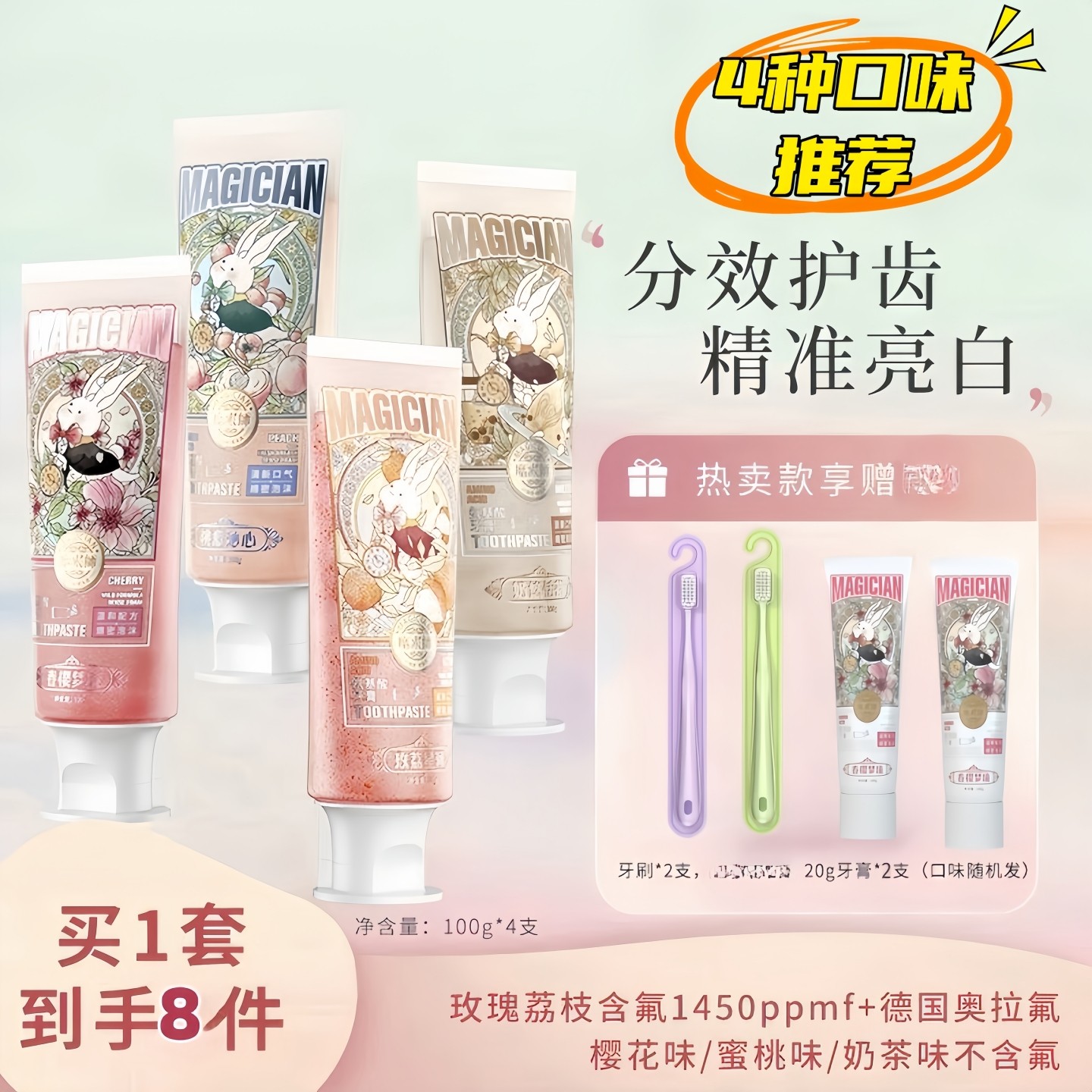 📚 魔术师氨基酸酵素美白牙膏益生菌亮白去黄7天去牙渍口臭防蛀正品