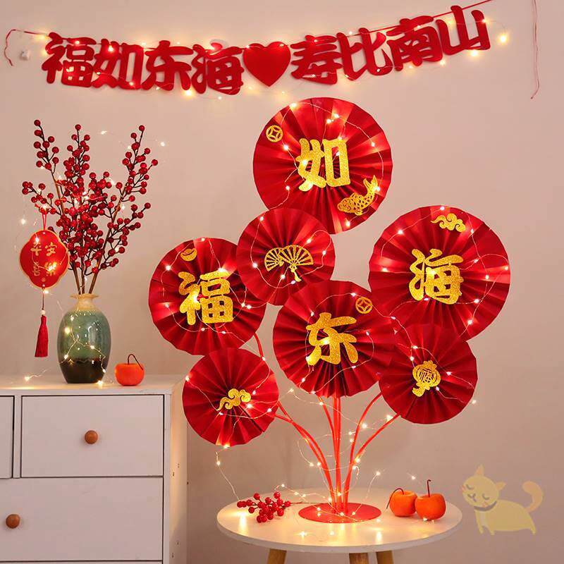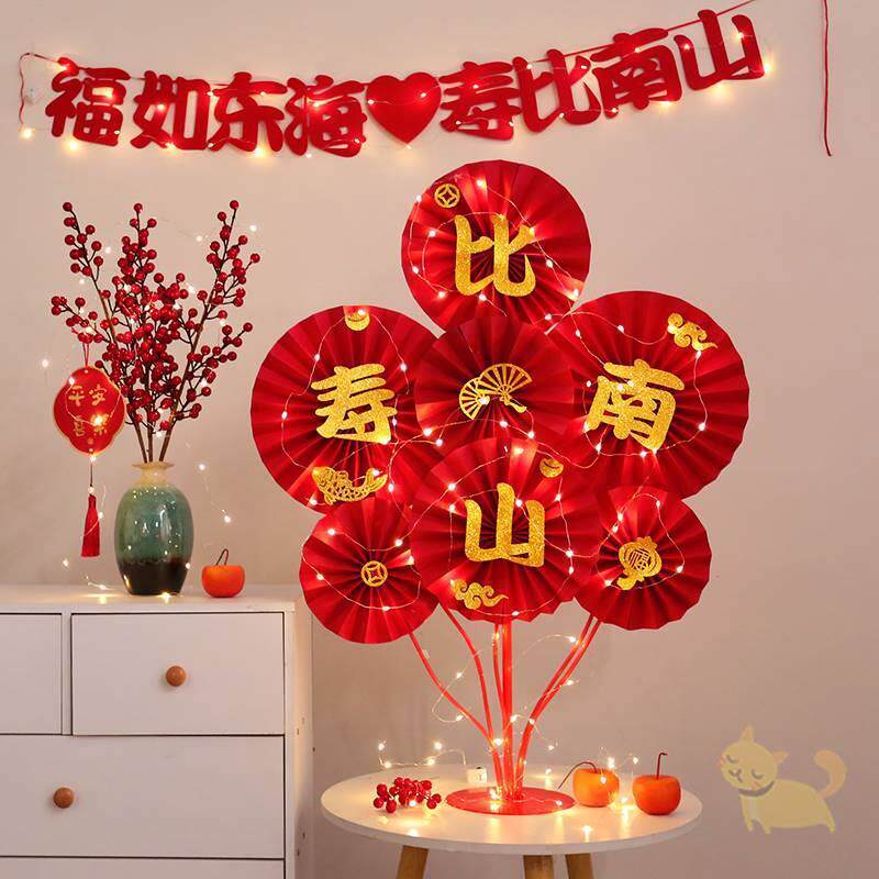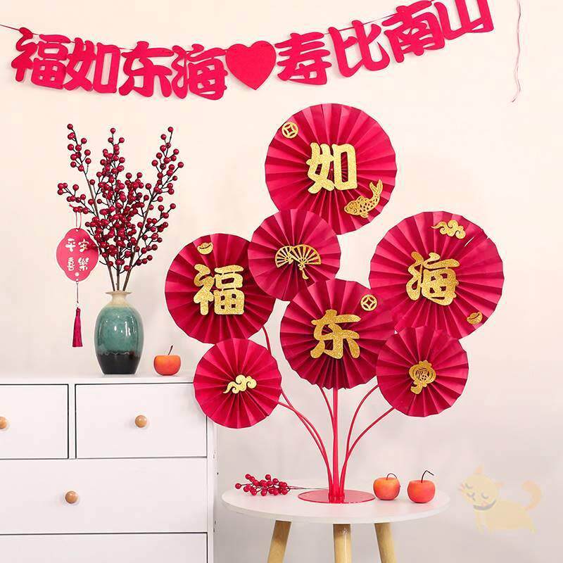 📚 寿星生日布置80大寿寿宴场景纸扇花桌面摆件长辈老人六十过寿装饰