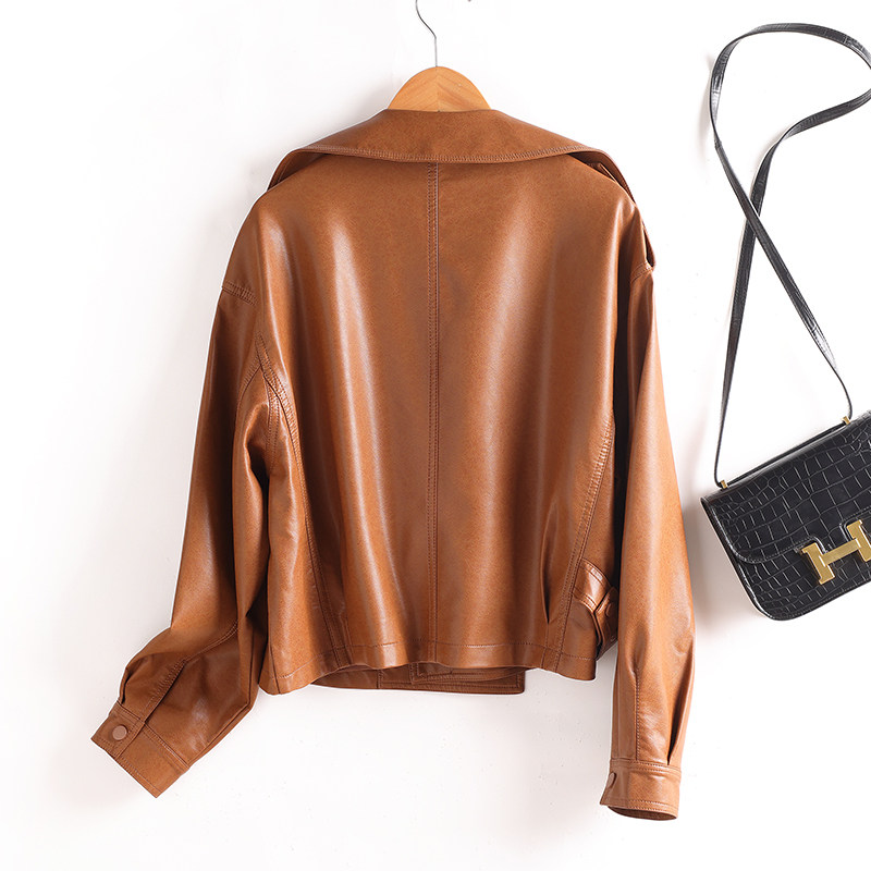📚 2025秋季海宁真皮皮衣女短款高端新品气质时尚大码宽松皮夹克外套