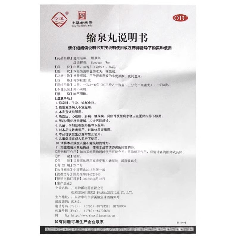 📚 沙溪 缩泉丸45g 补肾缩尿肾虚小便频数夜卧遗尿中华老字号旗舰店