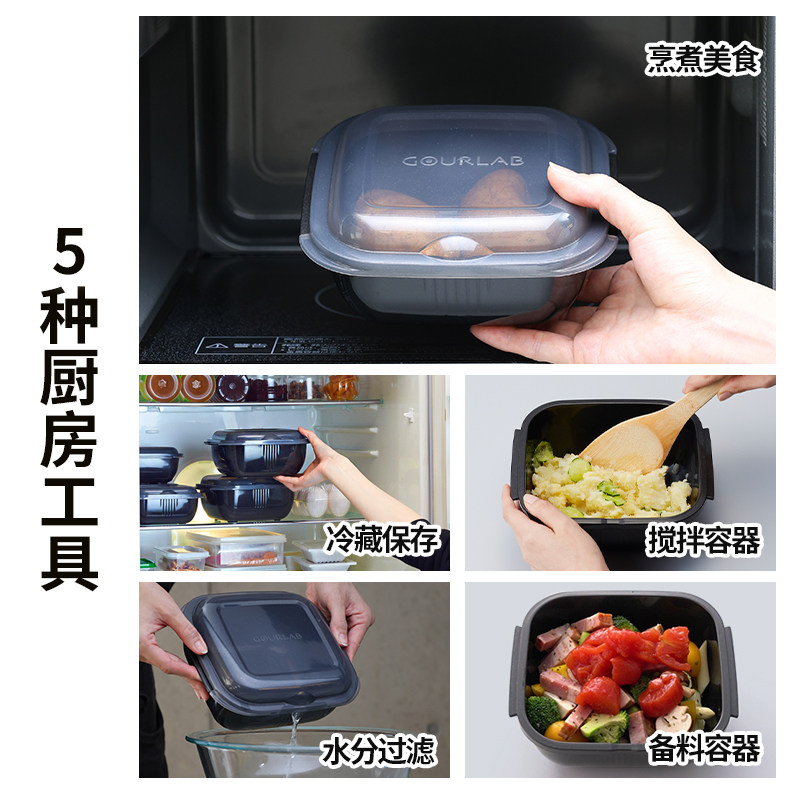📚 日本岩谷GOURLAB烹调盒微波炉魔烹盒加热专用蒸笼饭盘多功能容器